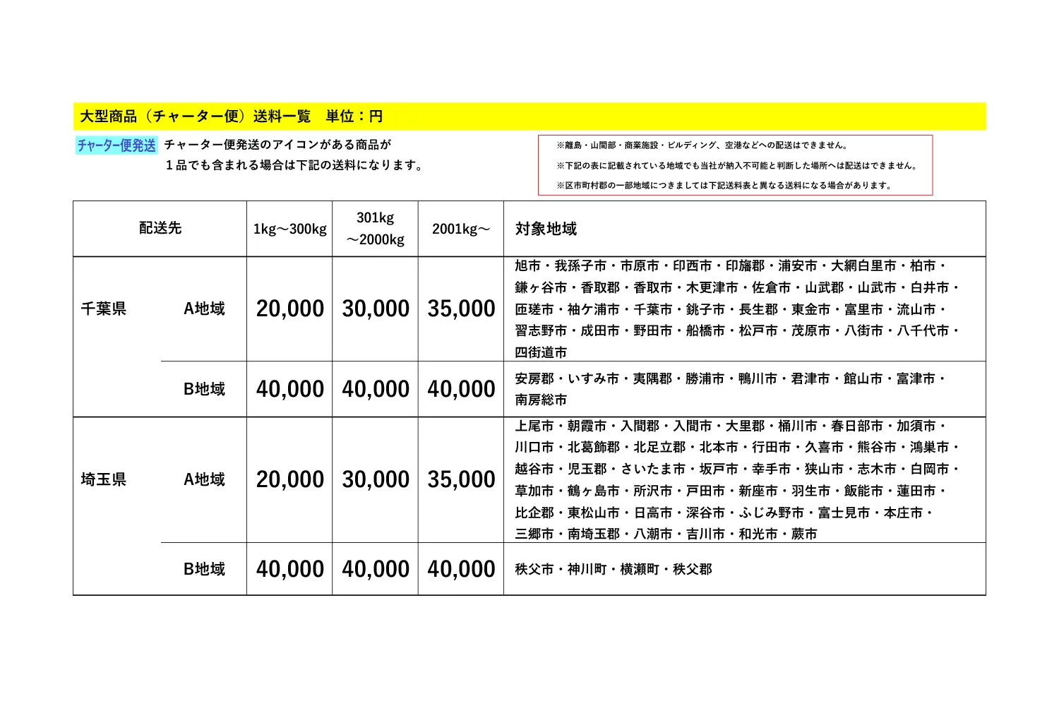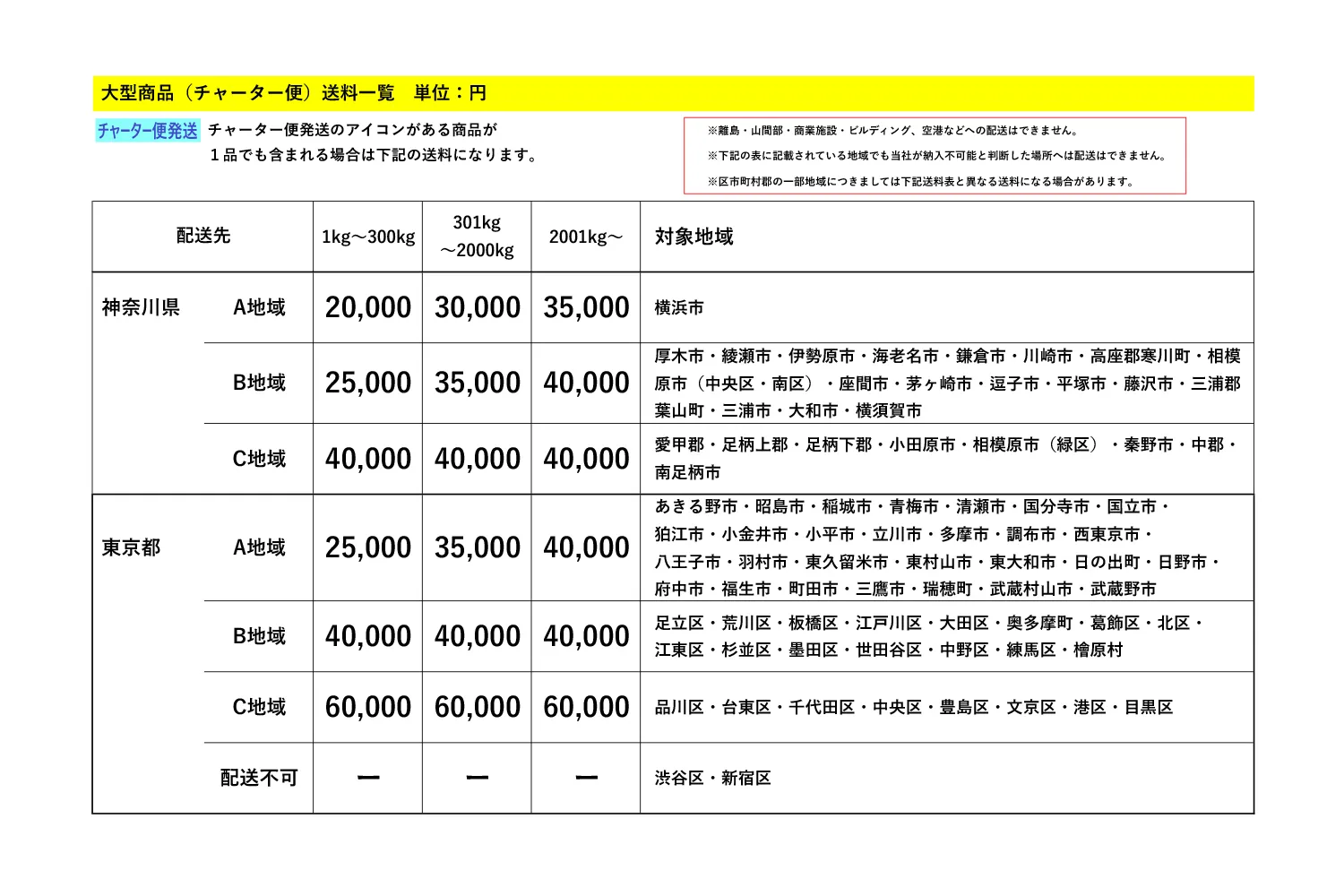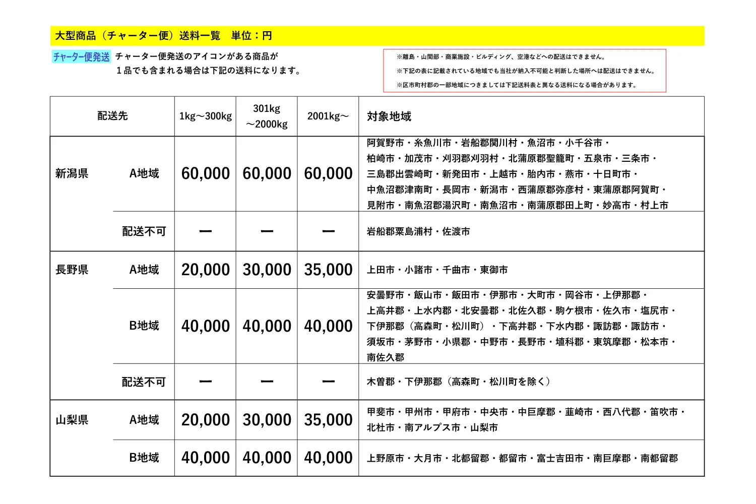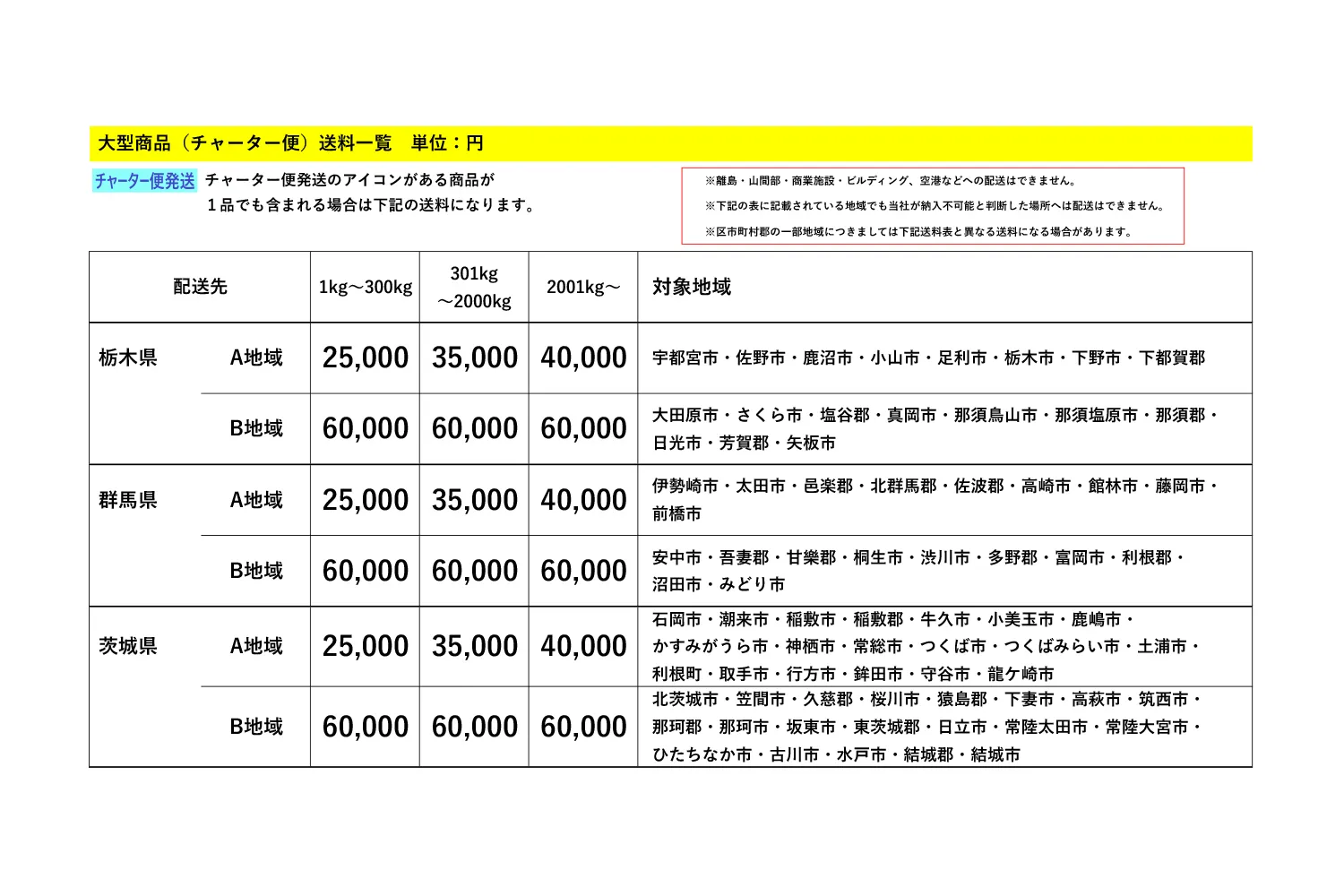 大型商品が1つでも含まれる場合は大型商品の送料体系による送料になります。