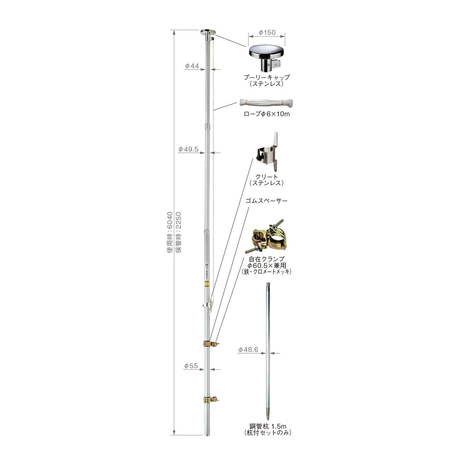 φ42.7/φ48.6単管パイプを利用して設置してください。