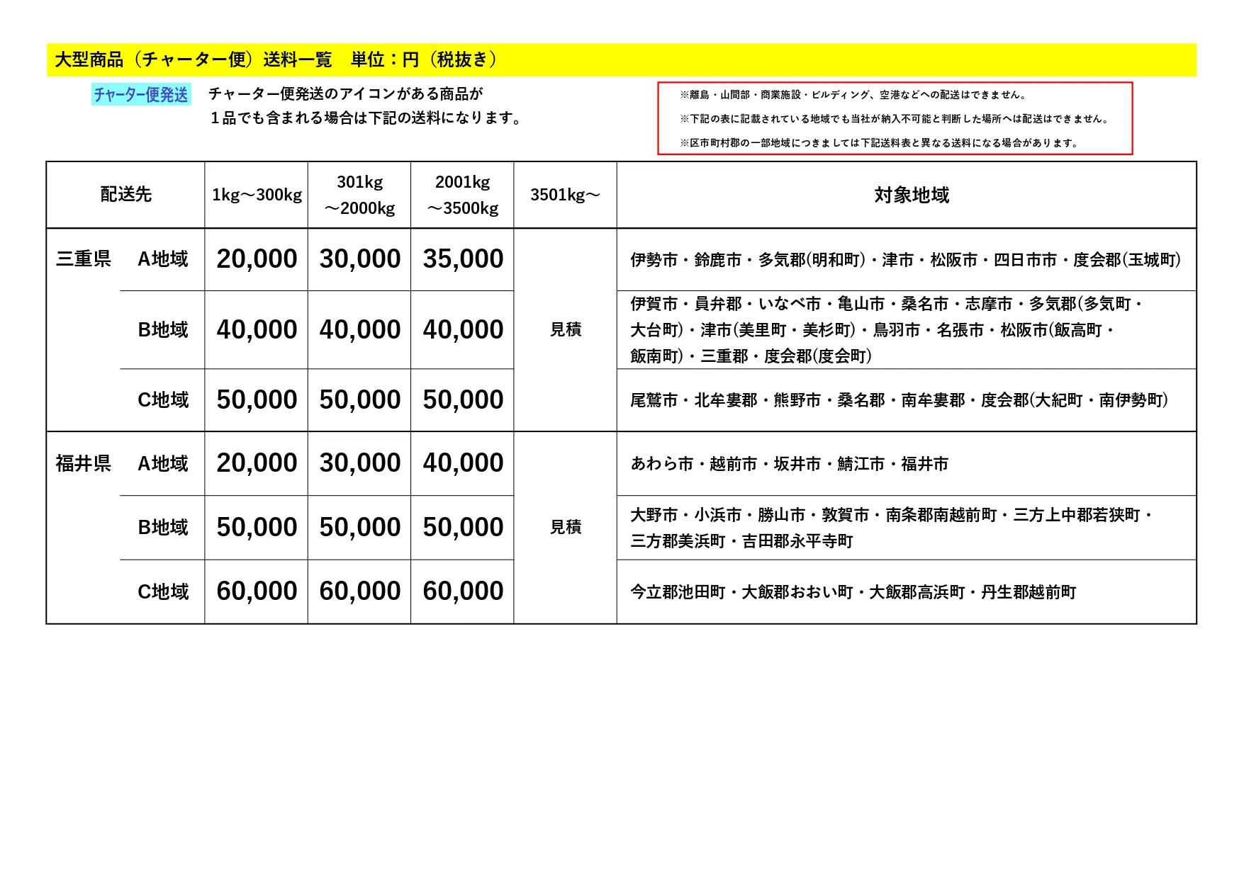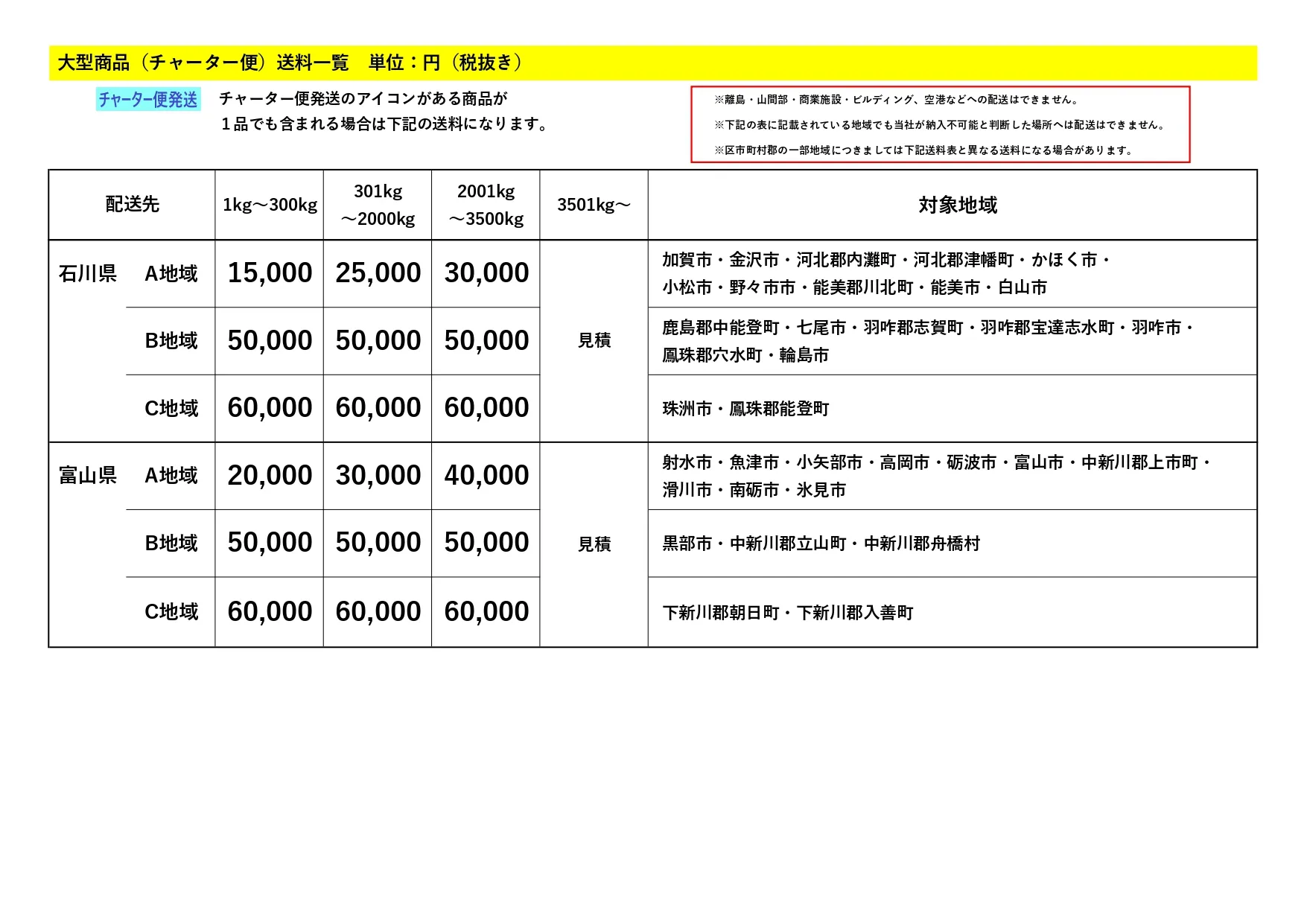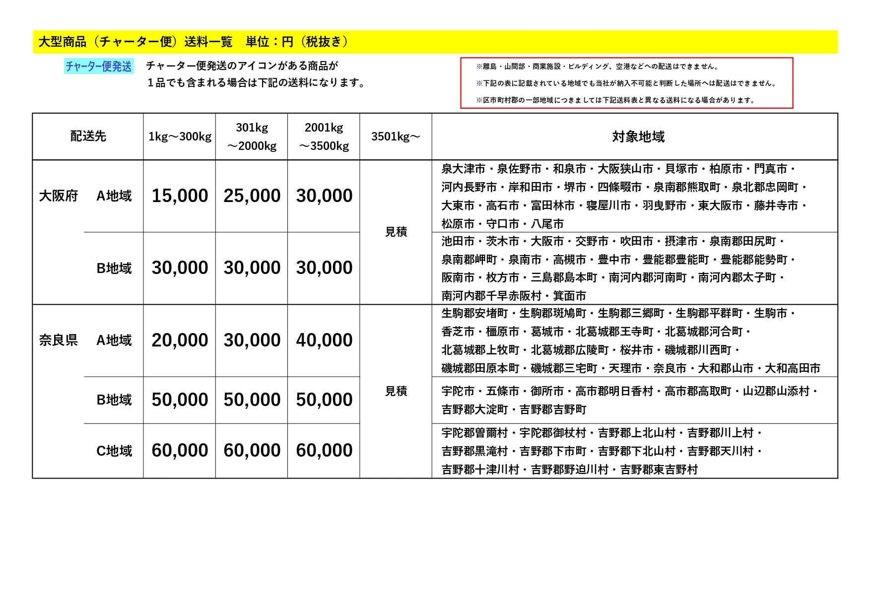 大型商品(チャーター便)