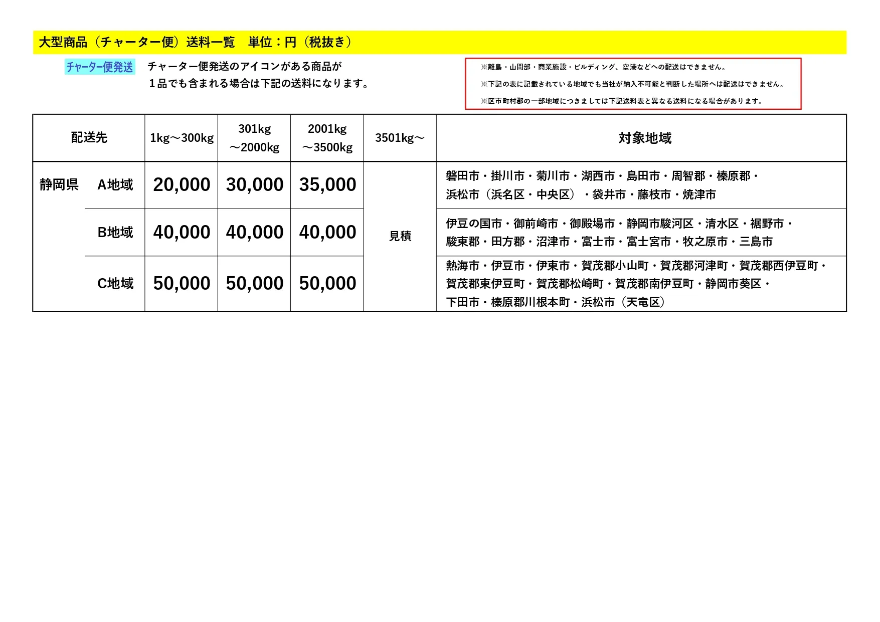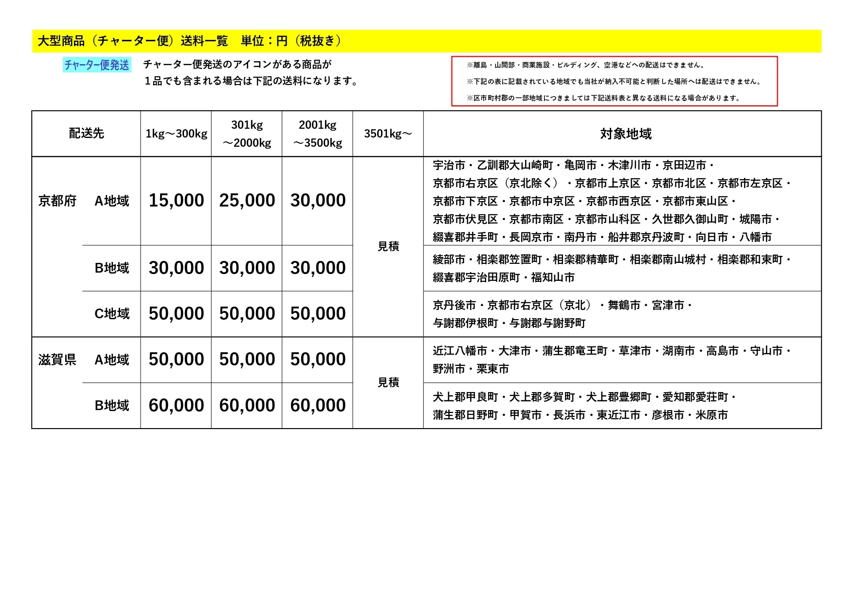 大型商品の送料について