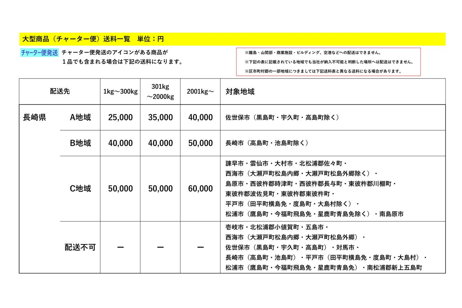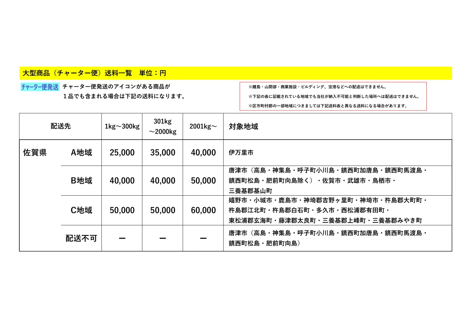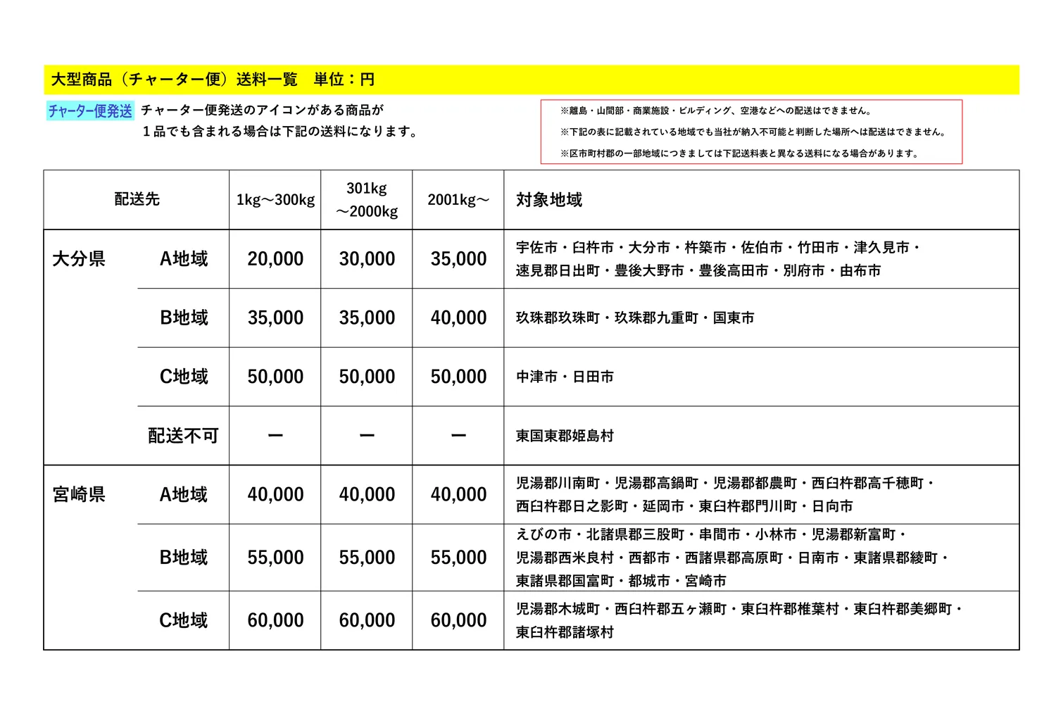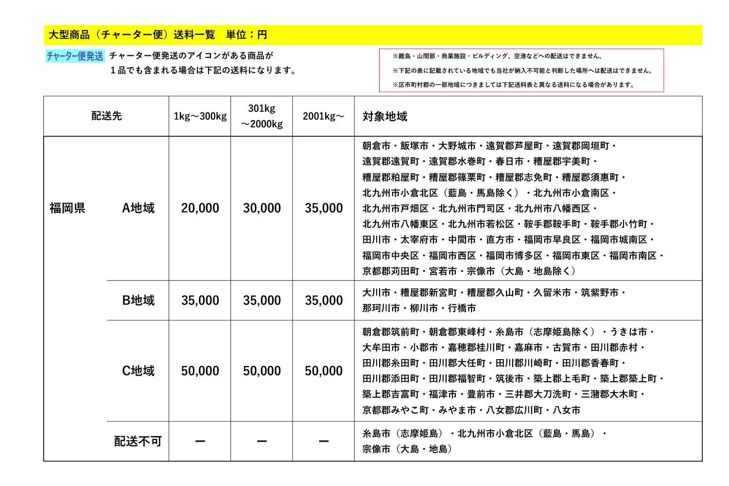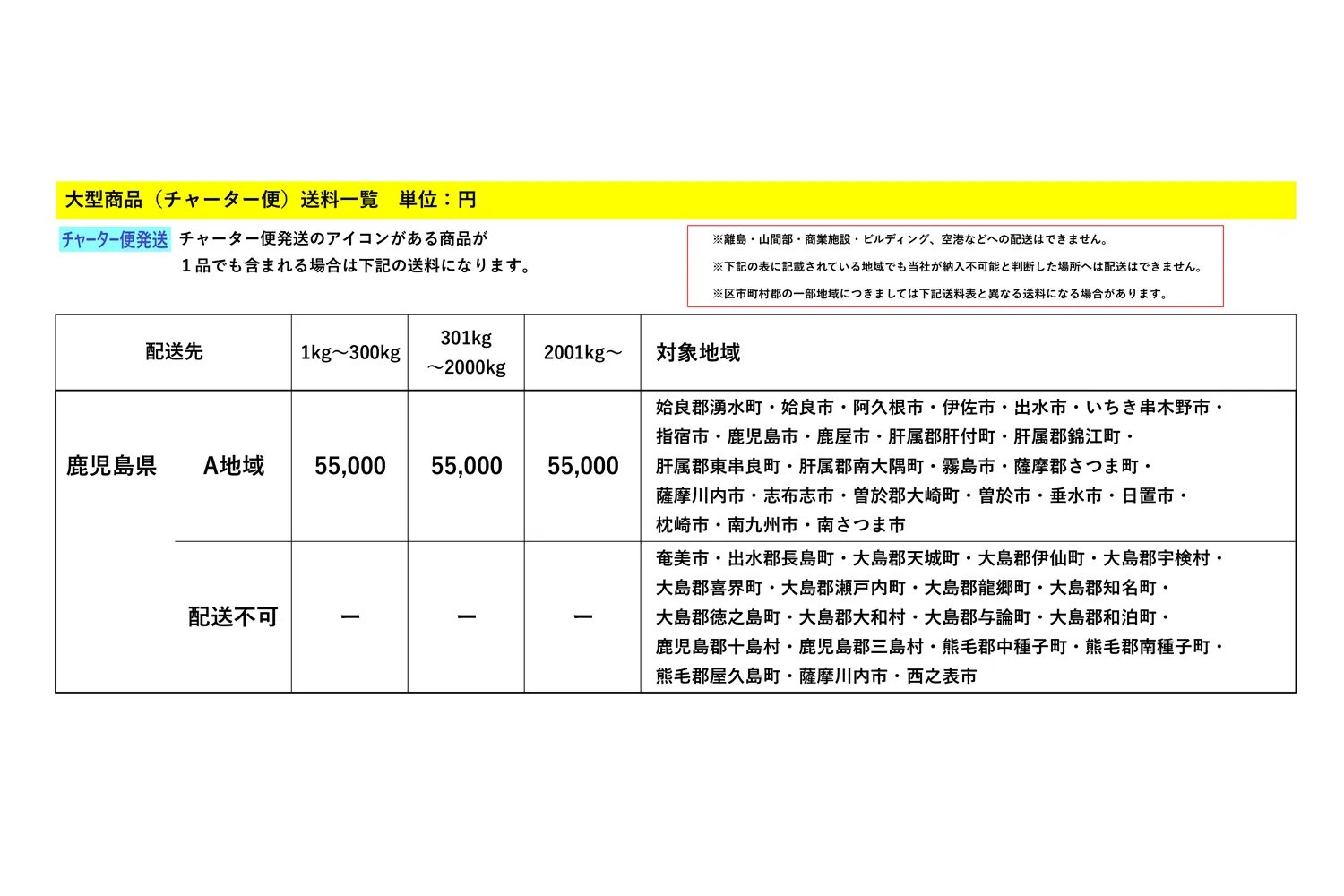 大型商品が1つでも含まれる場合は大型商品の送料体系による送料になります。