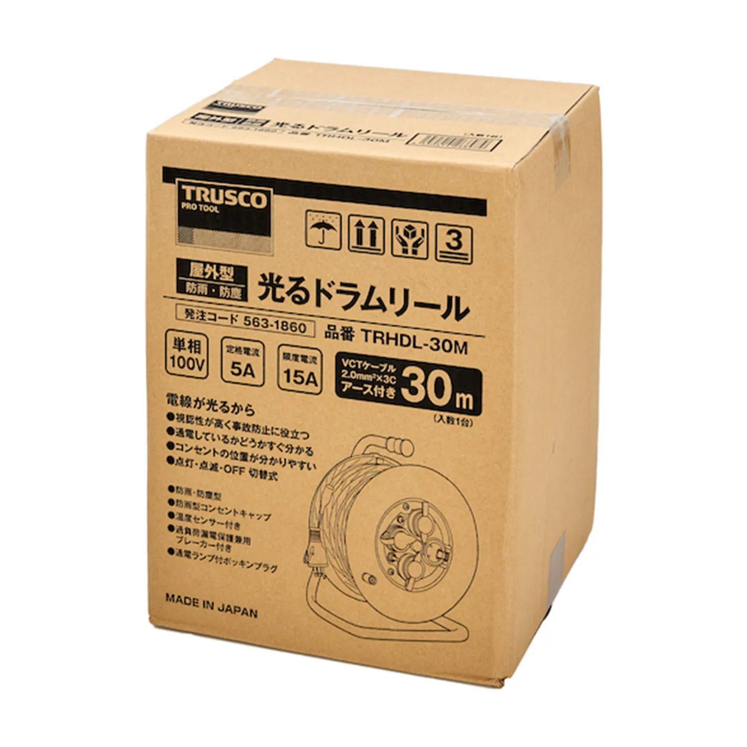 TRUSCO 光るドラムリール 防雨防塵型100V 30m