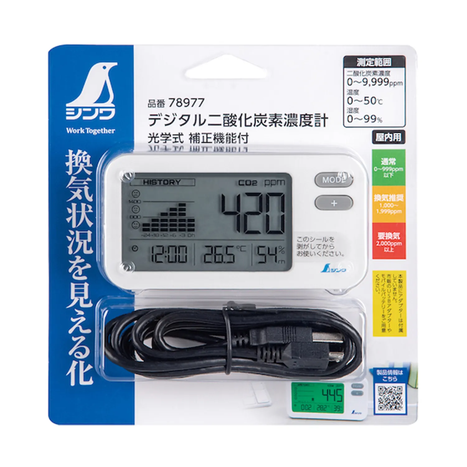 シンワ デジタル二酸化炭素濃度計 光学式 補正機能付