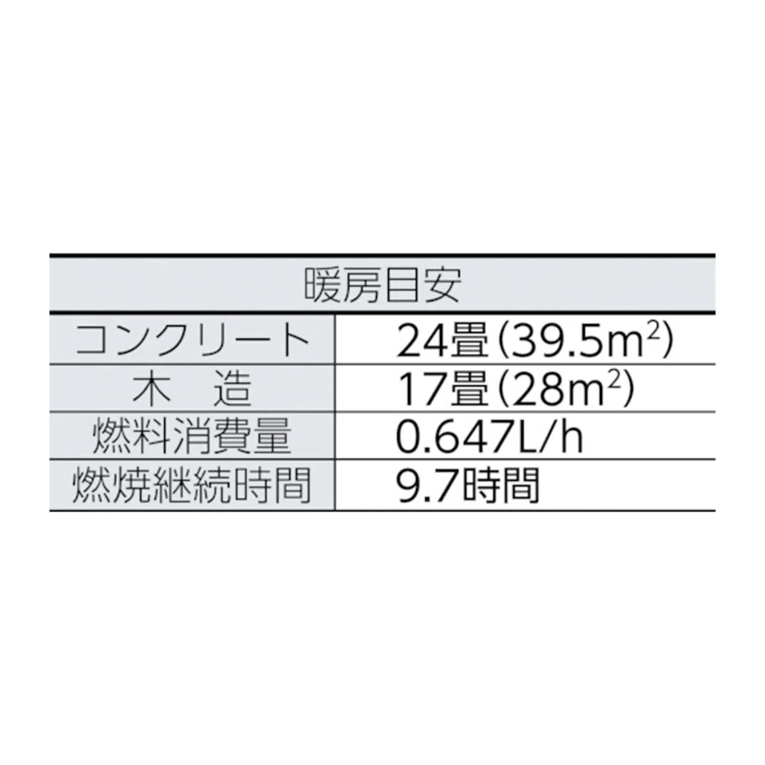 タンク容量(L):6.3/最大燃焼継続時間:9.7h