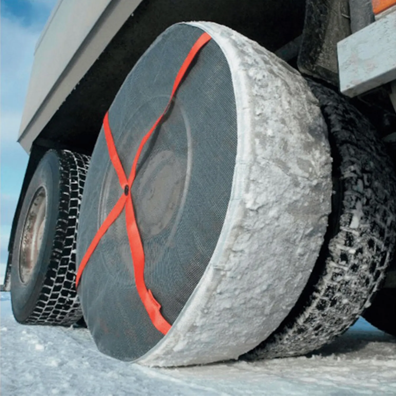 取付・取り外しが容易です。雪や氷上において高いグリップ力を誇ります。布製でアルミホイールを傷つけません。オールシーズンタイヤよりも高い摩擦力です。