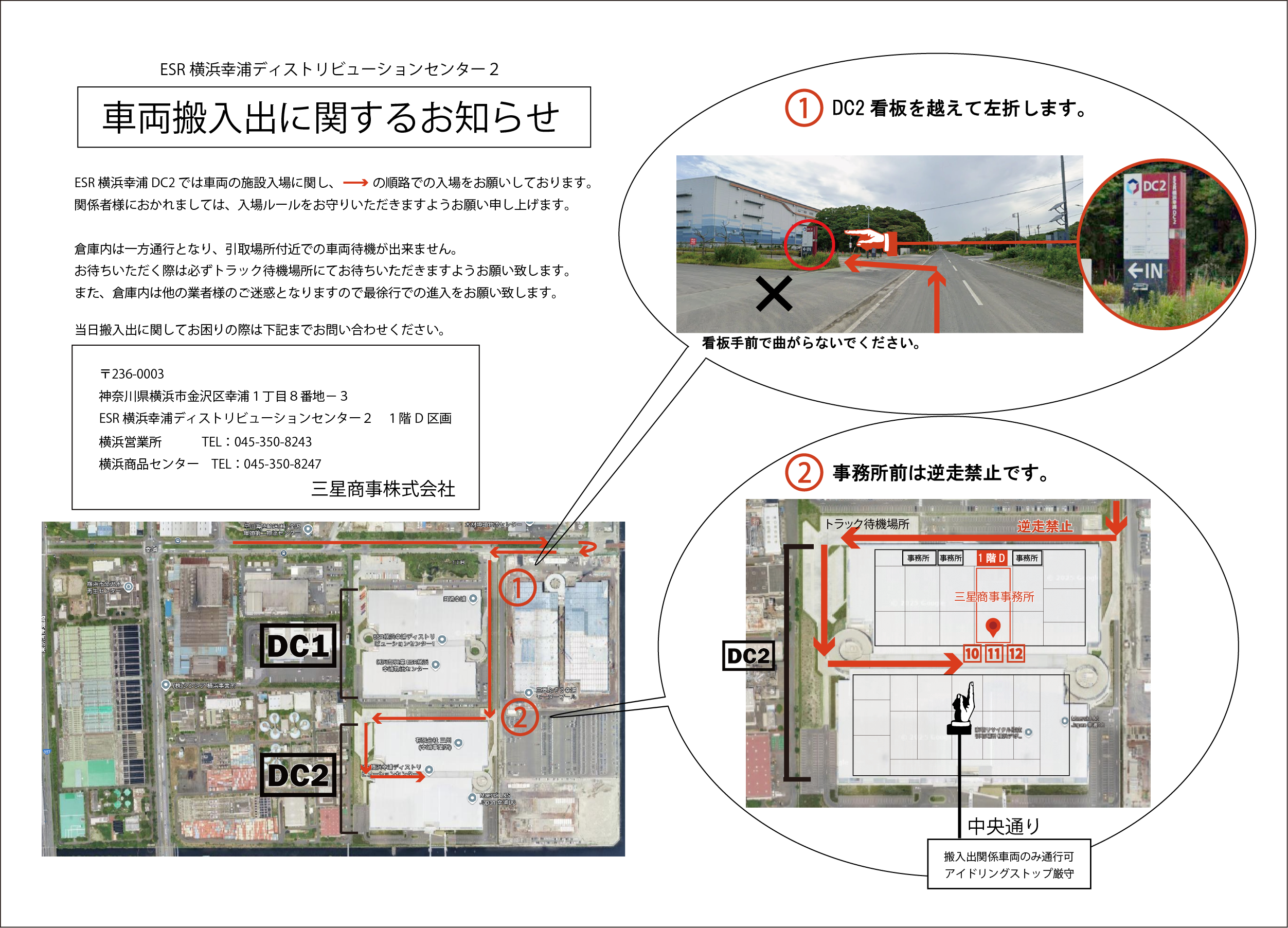 大型トラックが停車して荷下ろしする場所の確保をお願いいたします。